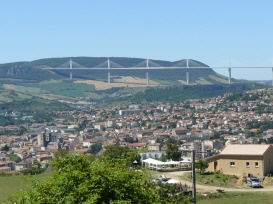 Die Brücke von Millau, zur Zeit die höchste Strassenbrücke der Welt, überspannt als Teil der Autobahn A75 das Tal des Tarn (Gorges du Tarn) und verkürzt die Fahrt von Clermont Ferrand zum Mittelmeer um 2 Stunden.