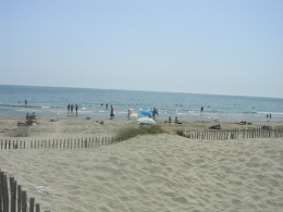 Natürlich lohnt sich auch ein Tag am Meer. Das Foto rechts zeigt den ca. 70 km entfernten Sandstrand zwischen Montpellier und La Grande Motte.