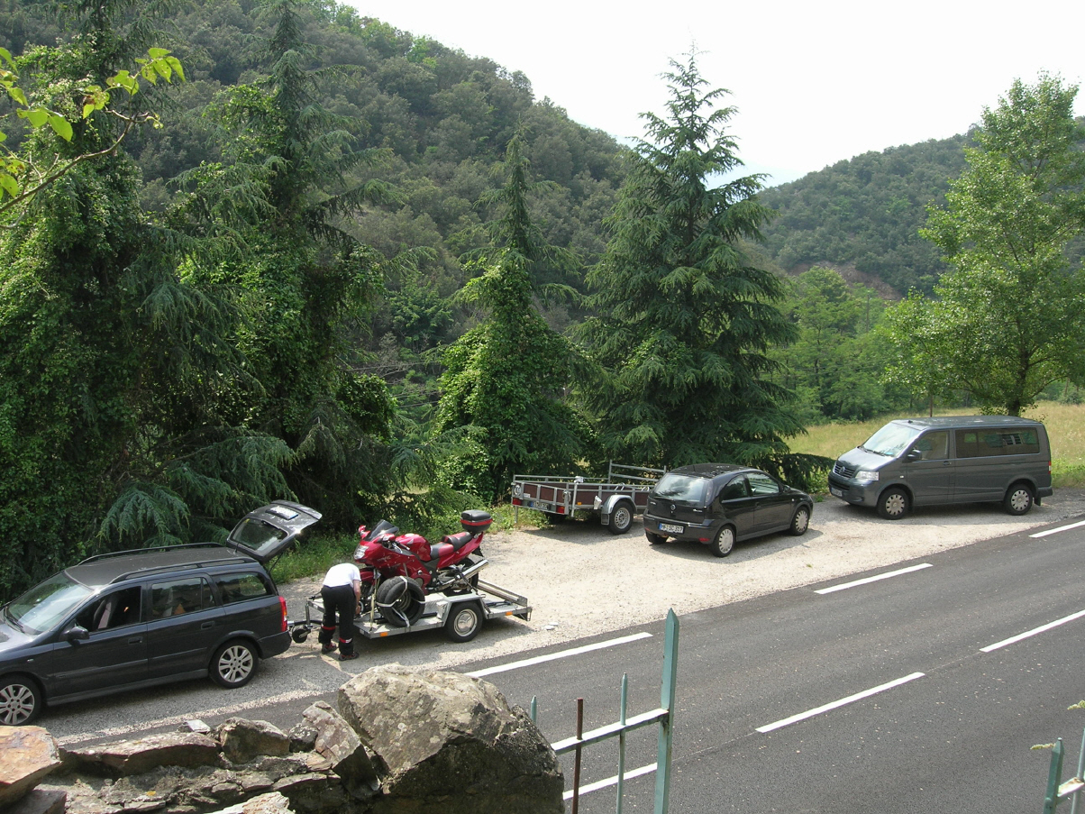 Natürlich findet Ihr bei uns auch eine abschließbare Garage für Eure Motorräder und einen Stellplatz für PKW's, auch mit Hänger.