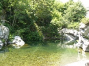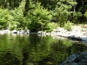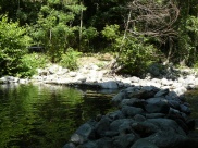 Direkt an unserer Wiese ist er relativ flach, aber schon nach 5-10 minütigem Fußweg findet man die herrlichsten Badeplätze.