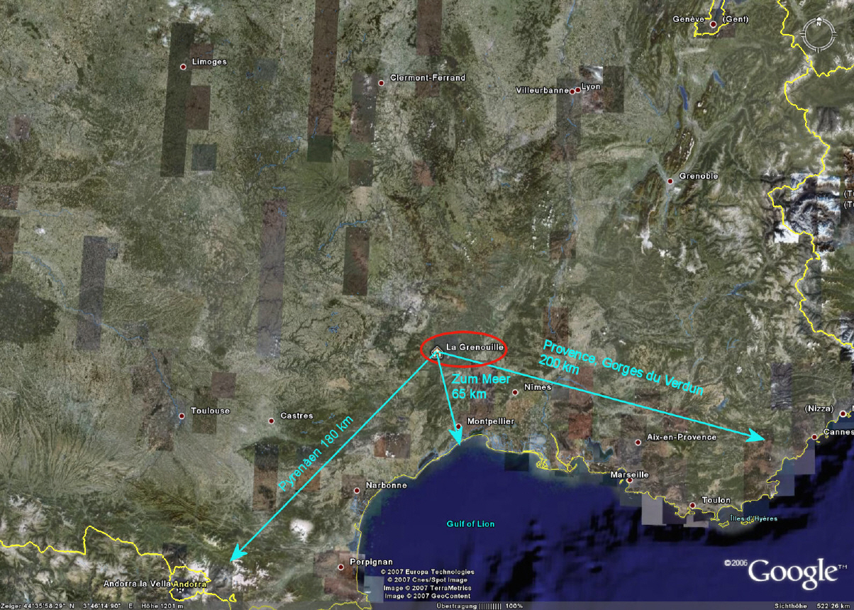 Est-ce que vous étiez déjà au Sud de la France avec la moto ? Les Pyrénées, Le Massif Central, la vallée de l’Ardèche, la Provence… ! Combien de milliers de kilomètres des plus belles routes nous attendent ? Est-ce que vous avez-vous déjà demandé pourquoi vous n’habitiez pas ici ? Il y a quelques ans que nous avons nous demandé cette question. En été 2006, on a pris alors la décision de déménager de l’Allemagne (vendre notre maison) et nous chercher un nouveau domicile au Sud de la France. On a trouvé « La Grenouille », une vieille station de poste (construite en 1750) au sud du parc naturel des Cévennes. Notre nouveau domicile se trouve à peu près 60 kilomètres de la mer Méditerranée et les Pyrénées et les Alpes françaises sont à arriver dans une heure sur l’autoroute…et devant la porte sont les virages infinis du Massif Central.